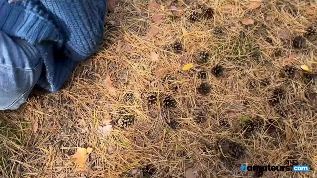 Ginger babe swallows cock in the woods